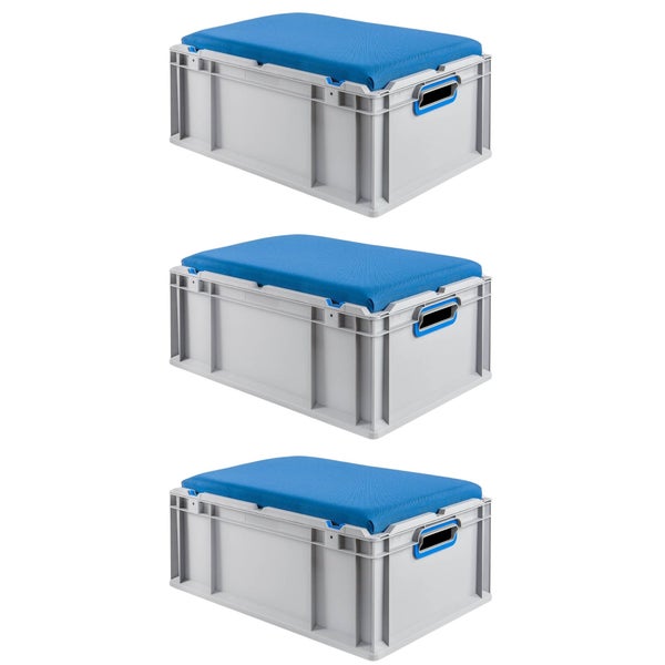 PROREGAL SparSet 3 x Eurobox NextGen Seat Box Blau HxBxT 26,5 x 40 x 60 cm 44 Liter Griffe Offen Eurobehälter Sitzbox Transportbox