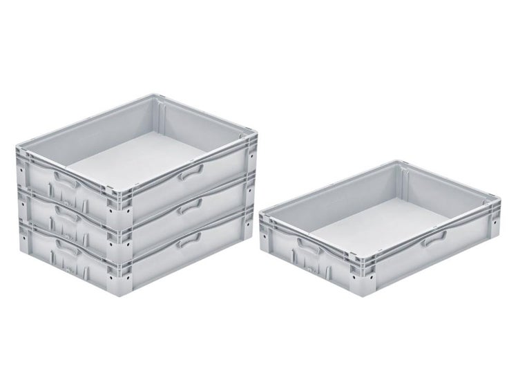 PROREGAL SparSet 4x Euro-Norm Großbehälter HxBxT 17 x 60 x 80 cm 72 Liter Glatter Boden Grau Eurobehälter Transportbox