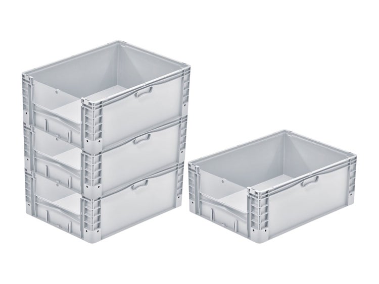 PROREGAL SparSet 4x Euro-Norm Großbehälter Insight Cover HxBxT 32 x 60 x 80 cm 133 Liter Grau Eurobehälter Transportbox