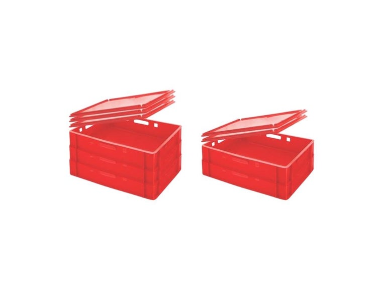 PROREGAL SparSet 5 x Eurobehälter Fleischerkasten E1 Mit Auflagedeckel HxBxT 12,5 x 40 x 60 cm 25 Liter Rot Fleischerkiste Fleischkiste