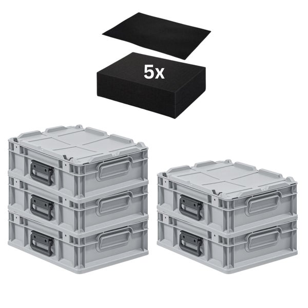 PROREGAL SparSet 5 x Eurobox NextGen Portable Mit Rasterschaumstoff und Schaumstoffeinlage HxBxT 13,5 x 30 x 40 cm 11 Liter Eurobehälter Transportbox