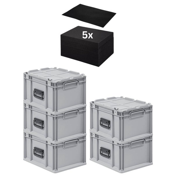 PROREGAL SparSet 5 x Eurobox NextGen Portable Mit Rasterschaumstoff und Schaumstoffeinlage HxBxT 23,5 x 30 x 40 cm 20 Liter Eurobehälter Transportbox