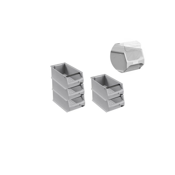 PROREGAL SparSet 5 x Graue Sichtlagerbox 4.1 Mit Griffstange und Abdeckung HxBxT 15 x 20 x 35 cm 7,2 Liter Sichtlagerbehälter Sichtlagerkasten