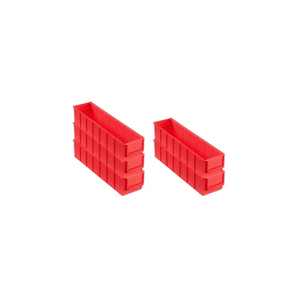 PROREGAL SparSet 5 x Rote Industriebox 400 S HxBxT 8,1 x 9,1 x 40 cm 2,2 Liter Sichtlagerkasten Sortimentskasten Sortimentsbox Kleinteilebox