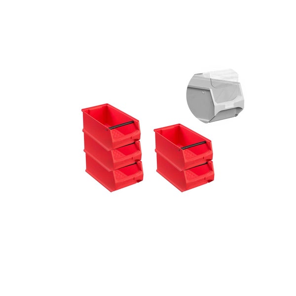 PROREGAL SparSet 5 x Rote Sichtlagerbox 4.1 Mit Griffstange und Abdeckung HxBxT 15 x 20 x 35 cm 7,2 Liter Sichtlagerbehälter Sichtlagerkasten