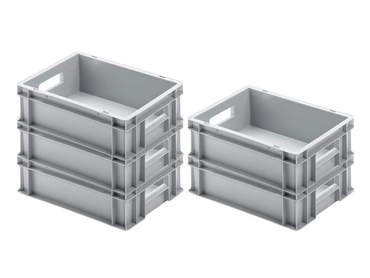 PROREGAL SparSet 5x Eurobehälter mit Offenem Griff HxBxT 12 x 30 x 40 cm 11 Liter Grau Eurobox Transportbox