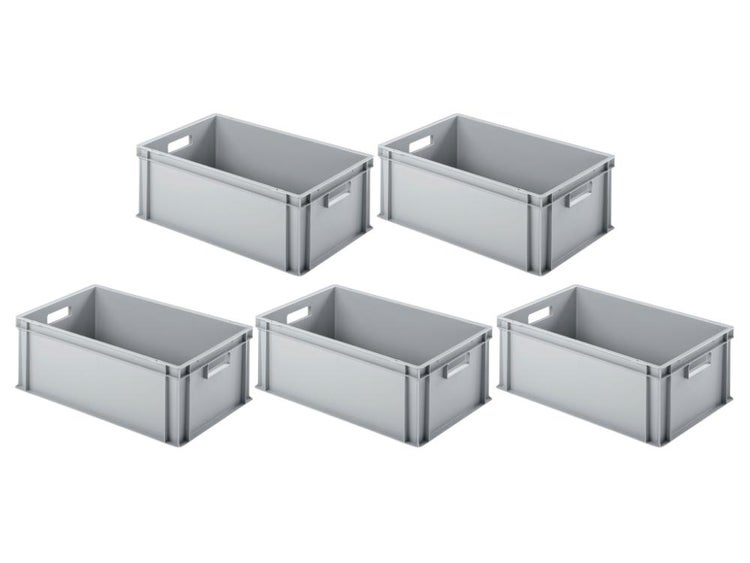 PROREGAL SparSet 5x Eurobehälter mit Offenem Griff HxBxT 22 x 40 x 60 cm 38 Liter Grau Eurobox Transportbox