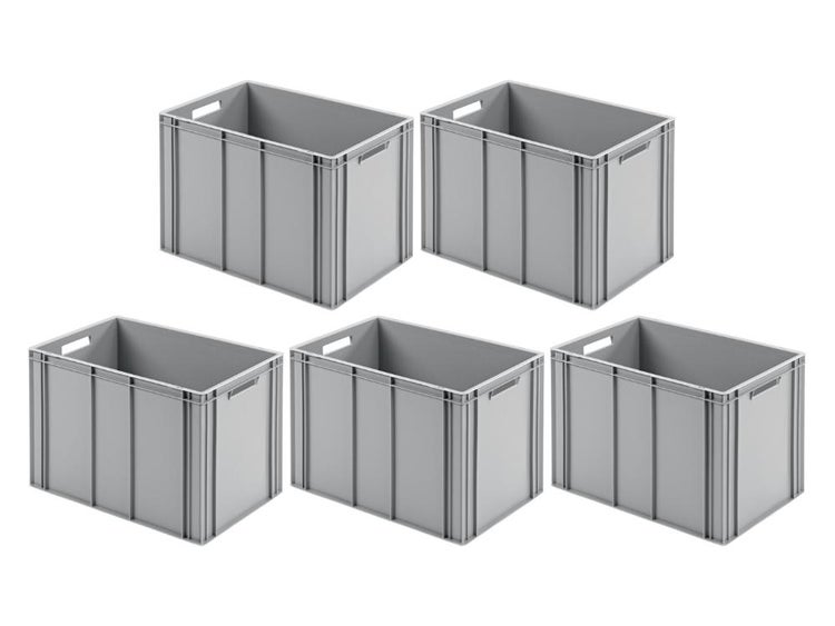 PROREGAL SparSet 5x Eurobehälter mit Offenem Griff HxBxT 42 x 40 x 60 cm 70 Liter Grau Eurobox Transportbox