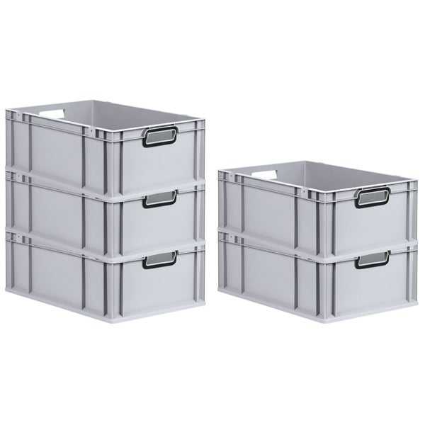 PROREGAL SparSet 5x Eurobox NextGen Color, HxBxT 22x40x60cm, 44 Liter, Griffe schwarz offen, Verstärkter Boden, Grau, Eurobehälter, Transportbox, Transportbehälter, Stapelbehälter