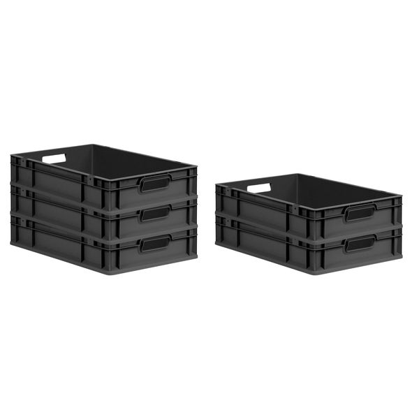 PROREGAL SparSet 5x Eurobox NextGen Grip, HxBxT 12x40x60cm, 23 Liter, Griffe offen, Schwarz, Eurobehälter, Transportbox, Transportbehälter, Stapelbehälter
