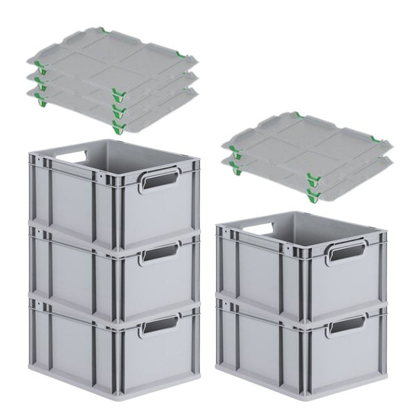 PROREGAL SparSet 5x Eurobox NextGen Grip mit Auflagedeckel mit 4 Grünen Schiebeschnappverschlüssen HxBxT 22 x 30 x 40 cm 20 Liter Griffe