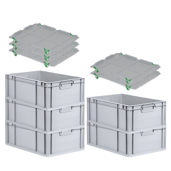 PROREGAL SparSet 5x Eurobox NextGen Grip mit Auflagedeckel mit 4 Grünen Schiebeschnappverschlüssen HxBxT 22 x 40 x 60 cm 44 Liter