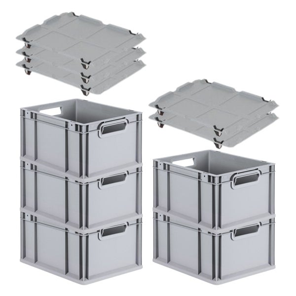 PROREGAL SparSet 5x Eurobox NextGen Grip mit Auflagedeckel mit 4 Schwarzen Schiebeschnappverschlüssen HxBxT 22 x 30 x 40 cm 20 Liter Griffe