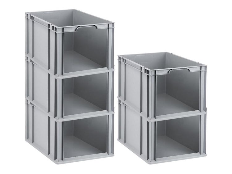 -Großzügige und ergonomische Griffmulden (offen oder geschlossen) für den einfachen Transport sowie extra verstärkter Boden bei großen Euroboxen