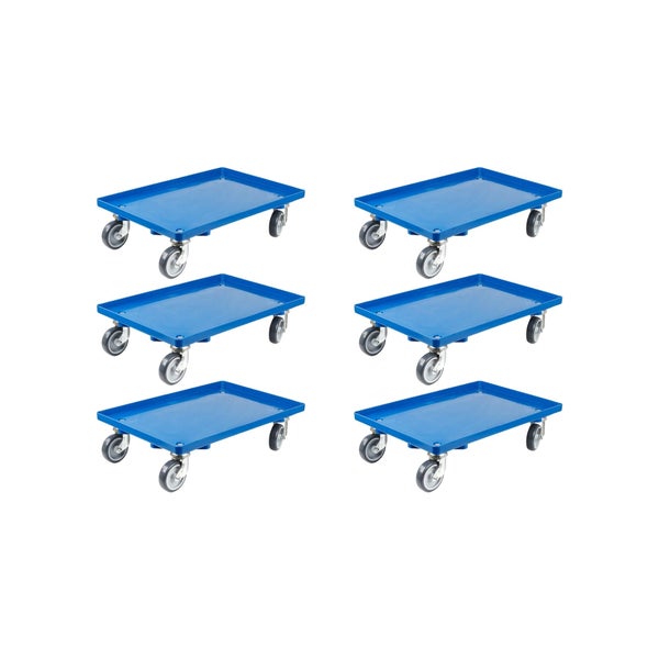 PROREGAL SparSet 6x Transportroller für Euroboxen 60 x 40 cm mit Gummiräder Blau Geschlossenes Deck 2 Lenkrollen und 2 Bremsrollen Traglast 300 kg
