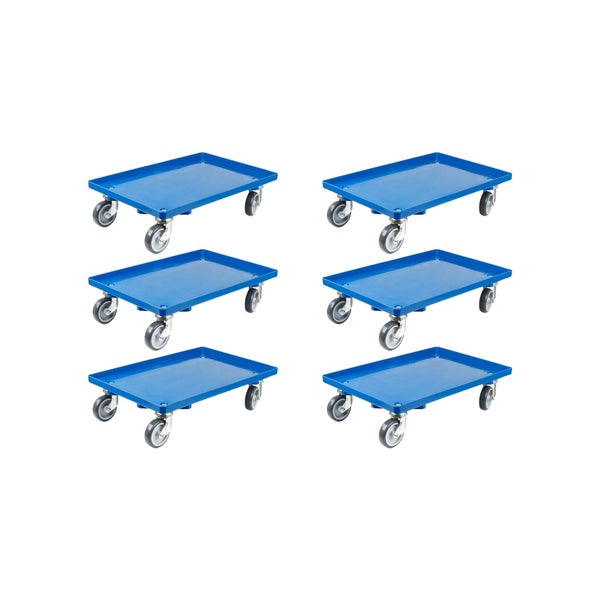 PROREGAL SparSet 6x Transportroller für Euroboxen 60 x 40 cm mit Gummiräder Blau Geschlossenes Deck 4 Lenkrollen Traglast 300 kg