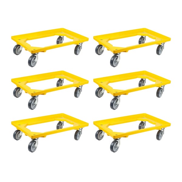 PROREGAL SparSet 6x Transportroller für Euroboxen 60 x 40 cm mit Gummiräder Gelb Offenes Deck 2 Lenkrollen und 2 Bremsrollen Traglast 300 kg