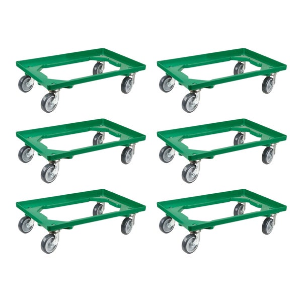 PROREGAL SparSet 6x Transportroller für Euroboxen 60 x 40 cm mit Gummiräder Grün Offenes Deck 2 Lenkrollen und 2 Bockrollen Traglast 300 kg