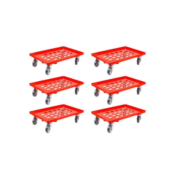 PROREGAL SparSet 6x Transportroller für Euroboxen 60 x 40 cm mit Gummiräder Rot Gitter/Rasterdeck 2 Lenkrollen und 2 Bremsrollen Traglast 300 kg
