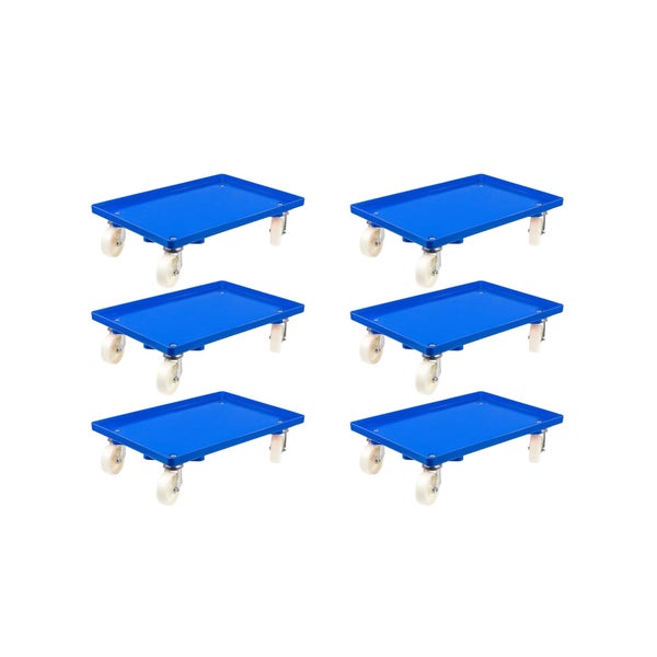 PROREGAL SparSet 6x Transportroller für Euroboxen 60 x 40 cm mit Kunststoffräder Blau Geschlossenes Deck 2 Lenkrollen und 2 Bockrollen 300 kg