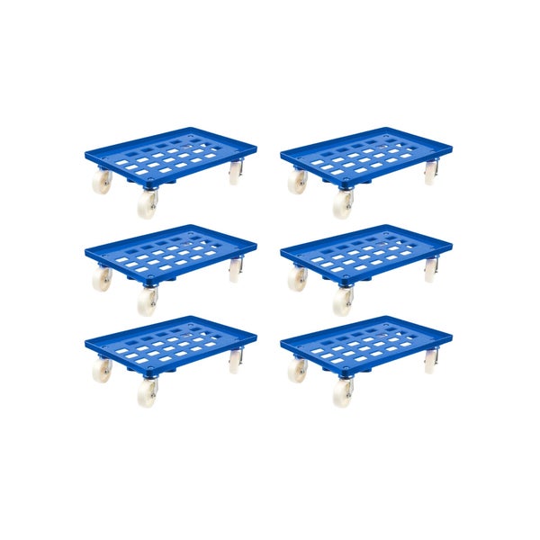 PROREGAL SparSet 6x Transportroller für Euroboxen 60 x 40 cm mit Kunststoffräder Blau Gitter/Rasterdeck 4 Lenkrollen Traglast 300 kg