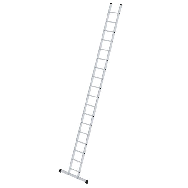 -Standard-Traverse mit rutschsicheren Leiterschuhen zum gewählten Produkt für einen sicheren Stand und Aufstieg bei Anlegeleitern über 3,0 m. Die Traverse liegt lose bei und wird zweifach am unteren Holmende verschraubt