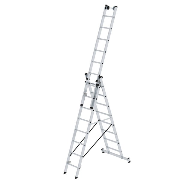 PROREGAL Sprossen-Mehrzweckleiter 3-Teilig mit Traverse und Wandlaufrollen 3 x 8 Sprossen