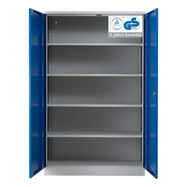 - HinweisDer Stahlschrank bietet Platz für 5 Ordnerhöhen, verfügt über 4 verstellbare Fachböden
