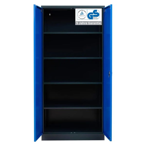 PROREGAL Stahlschrank Bee 4 Fachböden HxBxT 195 x 92 x 42 cm Verzinktes Fachbodenmaterial Anthrazit & Blau