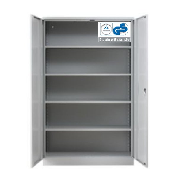 - HinweisDer Stahlschrank bietet Platz für 5 Ordnerhöhen, verfügt über 5 verstellbare Fachböden