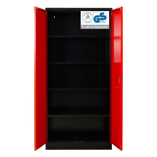 PROREGAL Stahlschrank Bee 5 Fachböden HxBxT 195 x 92 x 42 cm Pulverbeschichtetes Fachbodenmaterial Schwarz & Rot