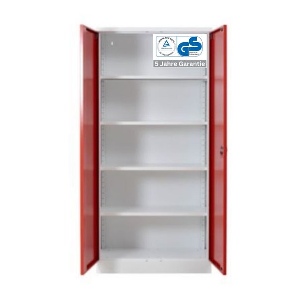 - HinweisDer Stahlschrank bietet Platz für 5 Ordnerhöhen, verfügt über 5 verstellbare Fachböden