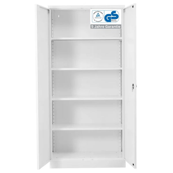 - HinweisDer Stahlschrank bietet Platz für 5 Ordnerhöhen, verfügt über 5 verstellbare Fachböden
