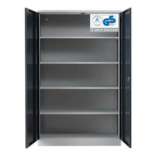 PROREGAL Stahlschrank Bee 6 Fachböden HxBxT 195 x 120 x 42 cm Verzinktes Fachbodenmaterial Grau & Anthrazit