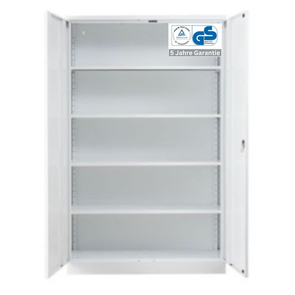 - HinweisDer Stahlschrank bietet Platz für 5 Ordnerhöhen, verfügt über 8 verstellbare Fachböden