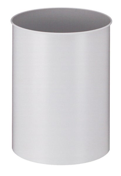 Feuerbeständiger, stillvoller, klassischer und Runder Papierkorb aus Metall. Der Behälter fügt sich unauffällig in seine Umgebung ein und leistet stets zuverlässige Dienste.