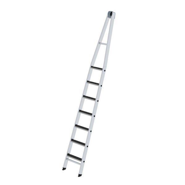 -Oberleiter mit Laufrollen und abriebfestem Anlegegummi mit Keilausschnitt