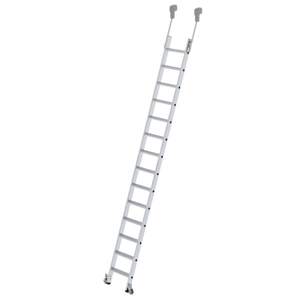 -Hinweis: Regalleitern werden in den angegebenen Standardlängen sowie individuell auf Maß gefertigt. Hierfür bitte jeweils die genaue senkrechte Einhängehöhe angeben – beim Preis wird die nächsthöhere Leiter sowie eine Änderungspauschale von 51,00 Euro UVP ohne MwSt. berechnet. Auf Maß gefertigte Regalleitern sind vom Umtausch ausgeschlossen