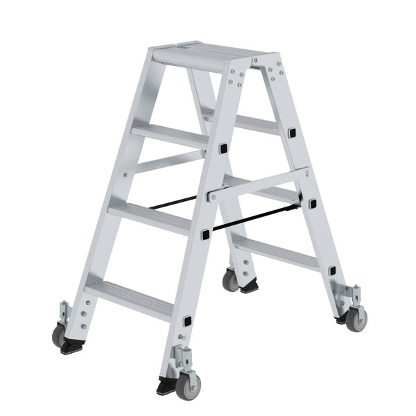 PROREGAL Stufen-Stehleiter Beidseitig Begehbar mit Rollen 2 x 4 Stufen