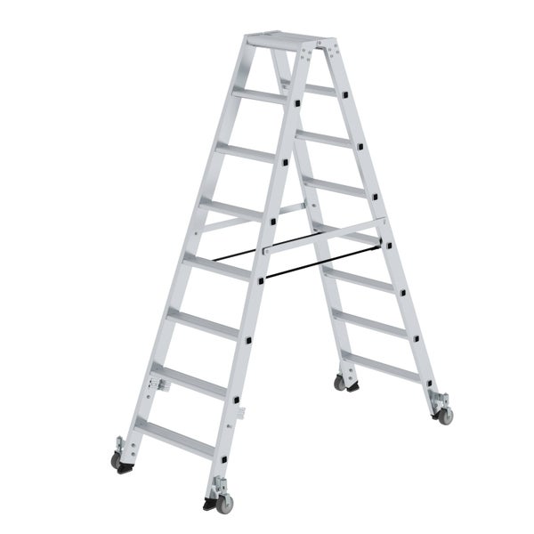 PROREGAL Stufen-Stehleiter Beidseitig Begehbar mit Rollen 2 x 8 Stufen
