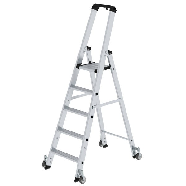 PROREGAL Stufen-Stehleiter Einseitig Begehbar mit Rollen 5 Stufen