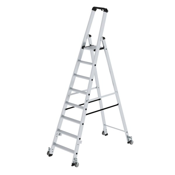 PROREGAL Stufen-Stehleiter Einseitig Begehbar mit Rollen 8 Stufen