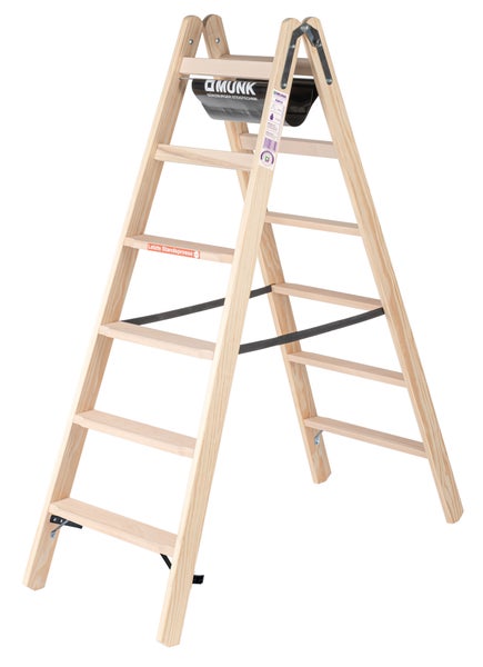 PROREGAL Stufen-Stehleiter Holz Beidseitig Begehbar 2 x 6 Stufen