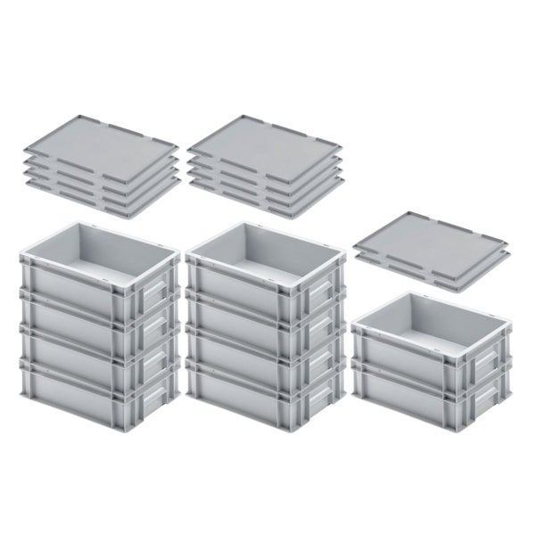 PROREGAL SuperSparSet 10x Eurobehälter mit Geschlossenem Griff und Auflagedeckel HxBxT 12 x 30 x 40 cm 11 Liter Grau Eurobox Transportbox