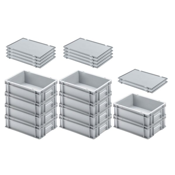 PROREGAL SuperSparSet 10x Eurobehälter mit Geschlossenem Griff und Scharnierdeckel HxBxT 12 x 30 x 40 cm 11 Liter Grau Eurobox Transportbox