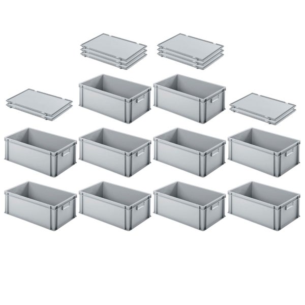 PROREGAL SuperSparSet 10x Eurobehälter mit Geschlossenem Griff und Scharnierdeckel HxBxT 22 x 40 x 60 cm 38 Liter Grau Eurobox Transportbox
