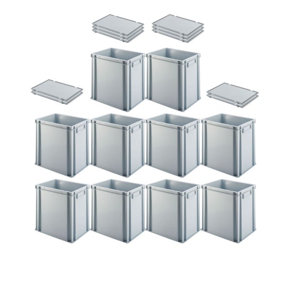 PROREGAL SuperSparSet 10x Eurobehälter mit Geschlossenem Griff und Scharnierdeckel HxBxT 40 x 30 x 40 cm 37 Liter Grau Eurobox Transportbox