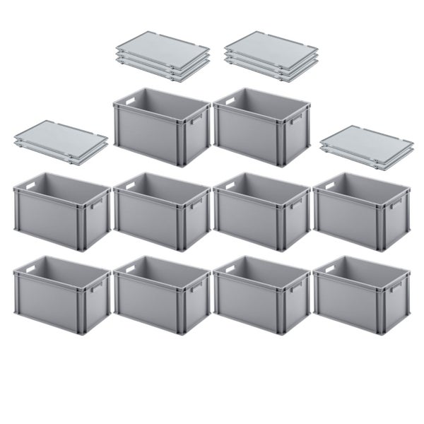 PROREGAL SuperSparSet 10x Eurobehälter mit Offenem Griff und Scharnierdeckel HxBxT 32 x 40 x 60 cm 56 Liter Grau Eurobox Transportbox