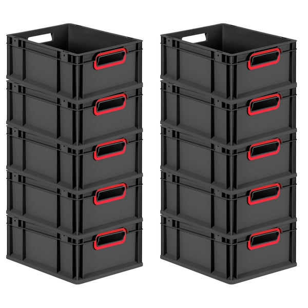 PROREGAL SuperSparSet 10x Eurobox NextGen Color, HxBxT 17x30x40cm, 16 Liter, Griffe rot offen, Schwarz, Eurobehälter, Transportbox, Transportbehälter, Stapelbehälter