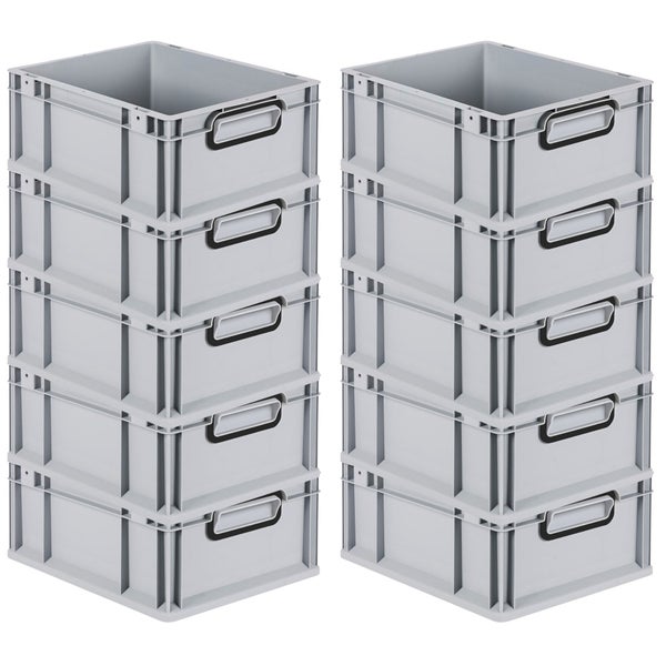 PROREGAL SuperSparSet 10x Eurobox NextGen Color, HxBxT 17x30x40cm, 16 Liter, Griffe schwarz geschlossen, Grau, Eurobehälter, Transportbox, Transportbehälter, Stapelbehälter